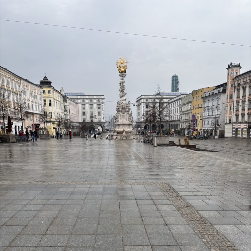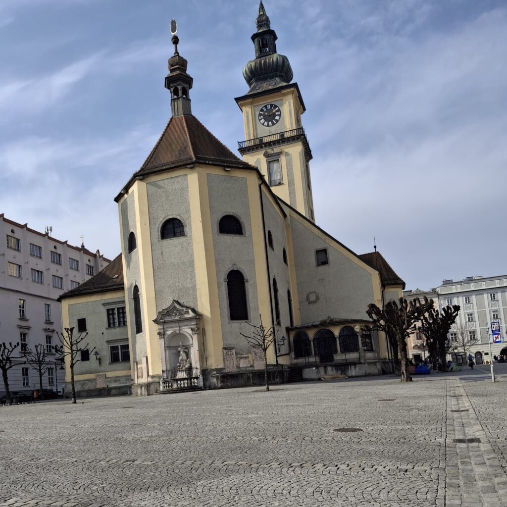 In unserer Freizeit waren wir erneut viel in der Stadt unterwegs und haben weitere Orte erkundet. Unter anderem besuchten wir die Stadtpfarrkirche Mariä Himmelfahrt am Pfarrplatz, in dessen Nähe sich ein Café-Restaurant befindet, das auf unserem täglichen Weg zum Fitnessstudio liegt. Zudem hielten wir uns erneut am Hauptplatz Linz auf, wo wir durch verschiedene Geschäfte schlenderten und uns das vielfältige Angebot anschauten.